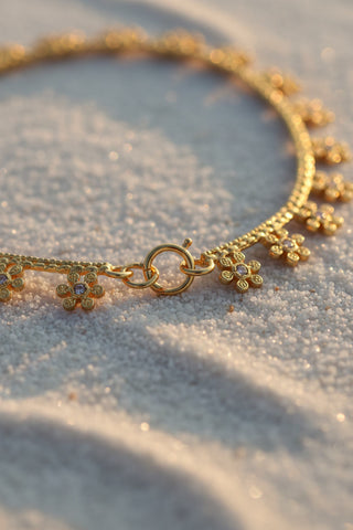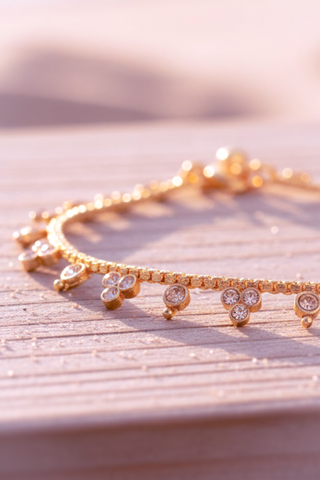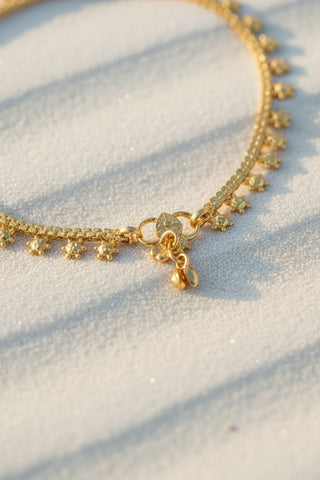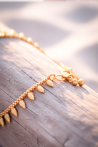 Delicate anklets with fine detailing and soft movement designed for barefoot days, salt air, and sun-warmed skin.