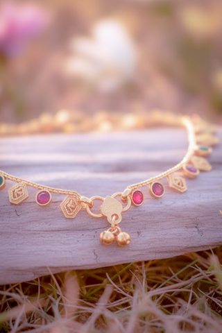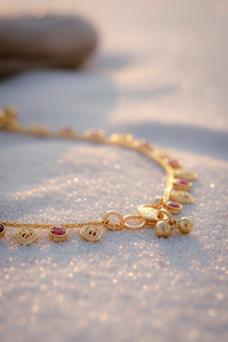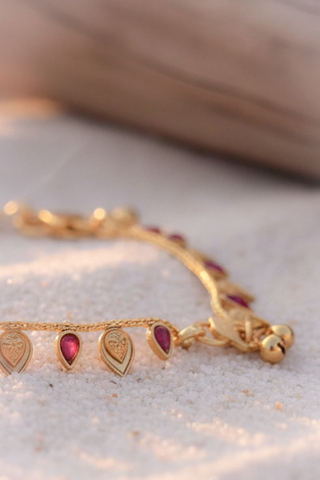 Ruby-Coloured Boho Charm Anklet – High Gold Finish